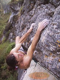 Stefan aus der Eifel klettert hier ´Power of Love´ (9-) an der Dachlwand (Bild: Martin Grulich)