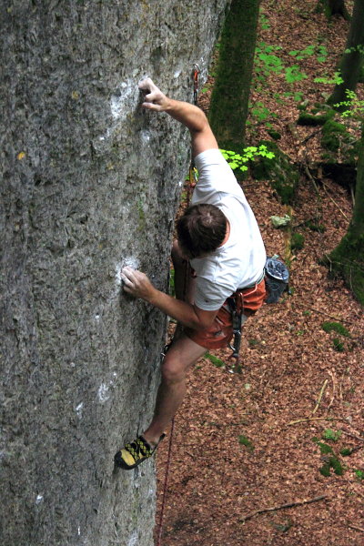 Wie kriegt man nur diesen Baum weg, der wie ein Damoklesschwert über einem hängt und einem beim kleinsten Windzug während des Kletterns zermalmen würde???