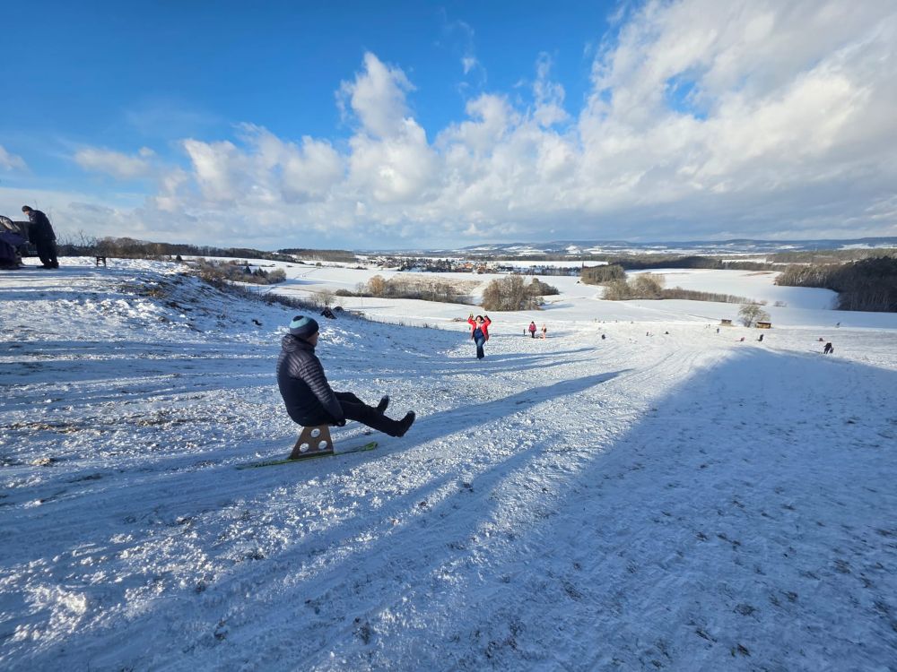 Die Schneefälle in den Morgenstunden des 02. Januar 2026 haben unerwartet im Frankenjura eine 4-8 Zentimeter dicke Schneedecke ausgebildet. Da die Böden schon länger gefroren waren, regen sich erste wintersportliche Initiativen in Sachen Langlauf sowie Abfahrtslauf.