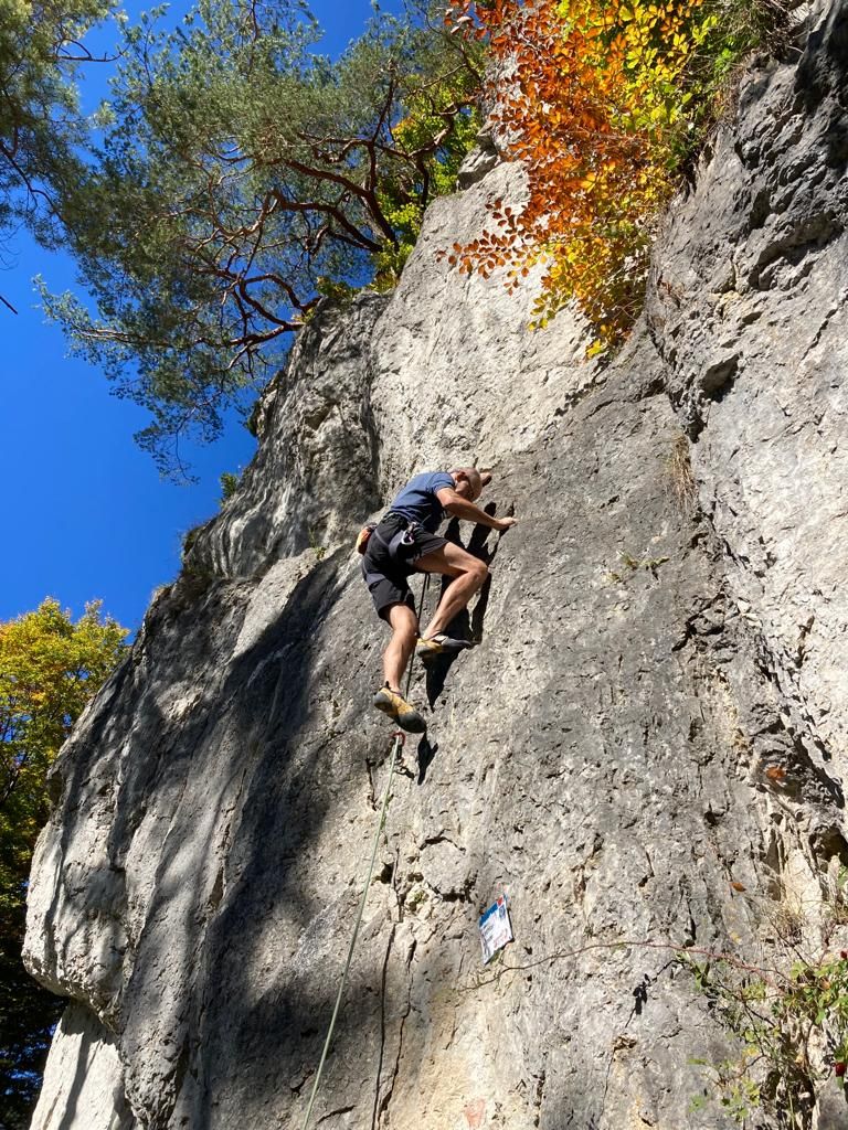Schöne Tour. Mit zusätzlicher Absicherung an der Schuppe zum 3. Haken auch vernünfitg gesichert.