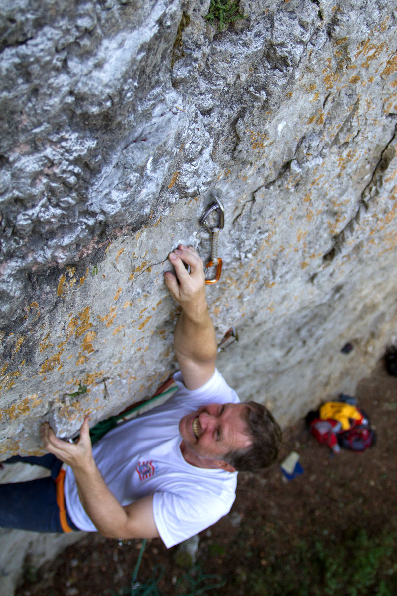 schöner boulder gleich unten, am 3.haken ists gegessen. 8- fänd ich etwas zu hoch gegriffen.