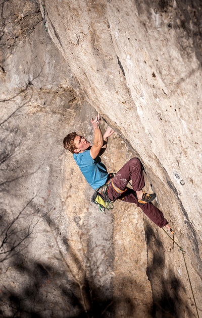 Jan Carlsen klettert ´ In the middle of nowhere´ (10+/11-) an den Bärenschluchtwänden (Bild: Rico Haase)