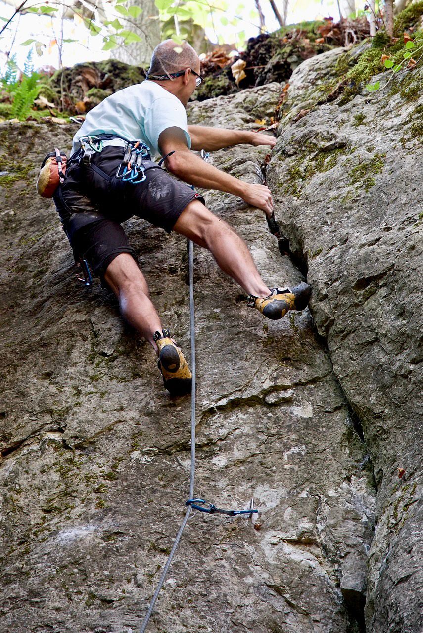 Oben dann echt coole Stelle, um in den Riss reinzukommen und auch diesen weiter zu klettern. Sehr cool und abwechslungsreich. Empfehlung!