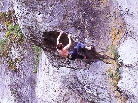 Geniale Ausdauerkletterei incl. Foothook an der Dachkante und ordentlichen Blockierern. Die Route wurde im Juli 2002 saniert!
