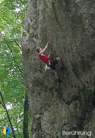 Übringens, die Berührung kann man auch ohne 1-Fingerloch klettern (links davon kleine U-Griffleiste!), gesehen bei meiner Freundin, die für den Zug zum 1-Fingerloch zu klein war!!! Also Jungs nicht jammern, be strong!