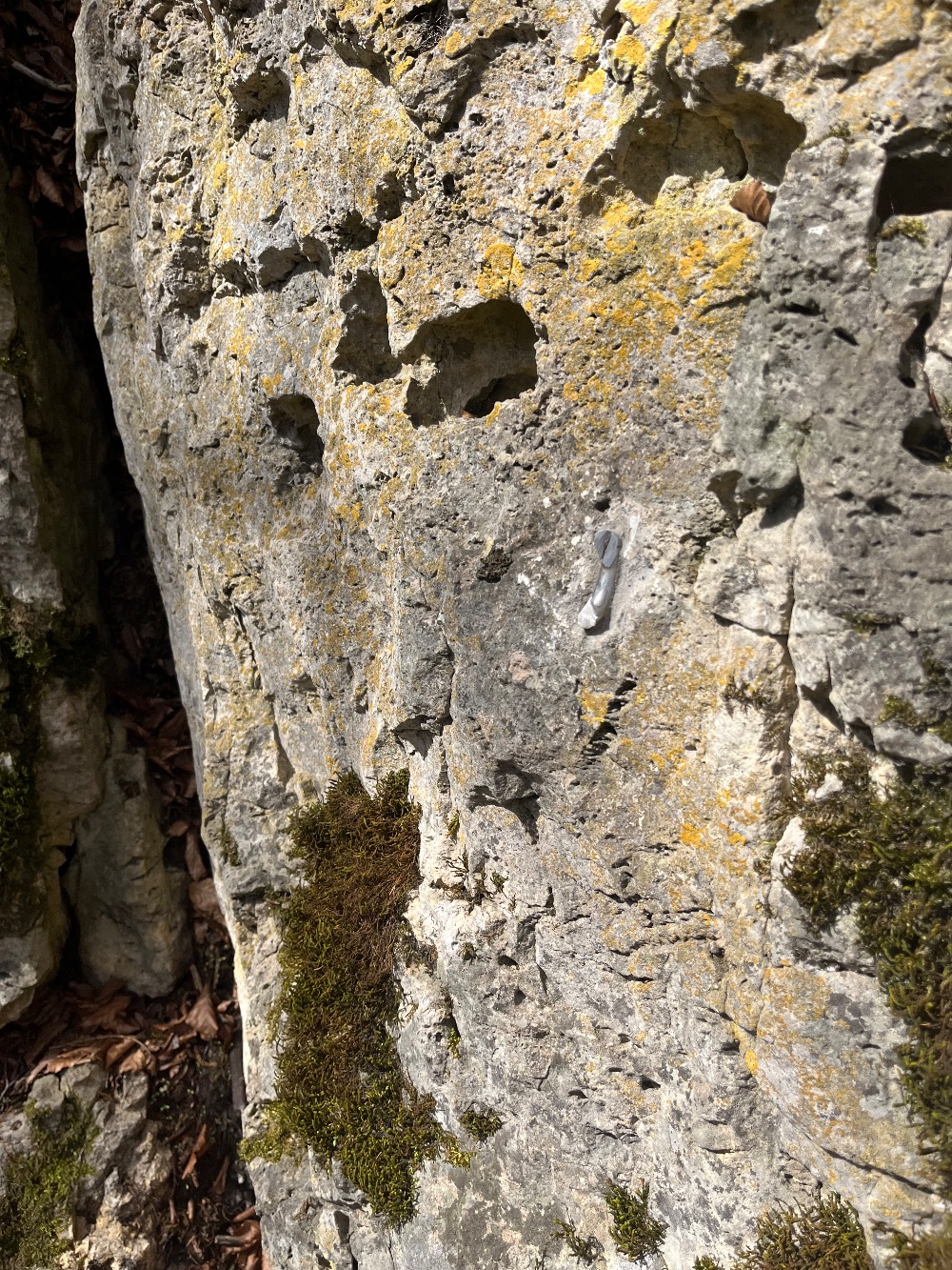 Der symbolische Gipfelhaken auf dem Zehnerstein wurde 1968 von Horst Dannhauser und weiteren sieben Kletteren auf dem Gipfel des Zehnersteins...