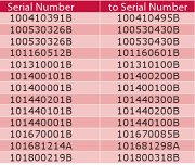 Die fehlerhaften SeriennummernDie betroffenen Geräte wurden zwischen dem 28. April und dem 30. Juni hergestellt. Es befinden sich 604 Geräte auf dem Markt, die betroffen sein könnten. Die betroffenen Geräte tragen eine der nebenstehenden Seriennummern. Die Seriennummer befindet sich auf der rückseitigen Kante eines der beiden mittleren Segmente.