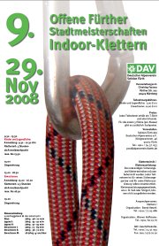 Am Samstag, dem 29. November 2008, finden in der Climbing Factory (Fürther Straße 212) in Nürnberg die neunten Fürther Stadtmeisterschaften statt. Gestartet wird in sechs verschiedenen Kategorien zu unterschiedlichen Zeiten. Teilnehmen kann jeder.