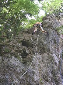 Das Beste neben der netten Kletterei sind jedoch die 20 m frei hängende Abseilfahrt vom Umlenker :-)